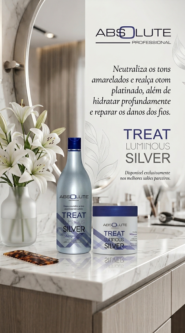 A linha Treat Luminous Silver foi especialmente formulada para cuidar dos cabelos loiros, grisalhos ou brancos. Neutraliza os tons amarelados e realça o tom platinado, além de hidratar profundamente e reparar os danos dos fios. Neutraliza o reflexo amarelo causado pela oxidação, prolongando e aumentando a durabilidade da cor platinada. Proporcionando hidratação, brilho, uniformidade e duração na coloração, deixando os cabelos loiros mais brilhantes e realçando um tom mais platinado e luminoso nos cabelos com mechas e descoloridos. Age em toda a estrutura dos fios desde a medula até as cutículas.