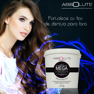 A Máscara Mega Universal Absolute é indicada para todos os tipos de cabelo. Com 2,650 kg, contém ativos especiais para a manutenção dos fios e pode ser utilizada para prevenção ou para reparação de danos, principalmente pós quÃmica.