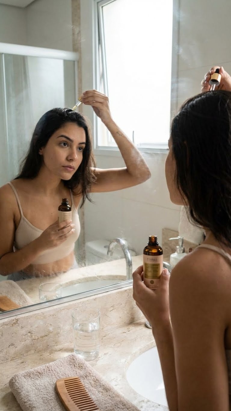 PimentaElixir nutritivo para couro cabeludo e fios:reparação lipídica, brilho e força tensora, açãoanti-frizz e dermoequilibrante. Ativos: Óleosvegetais (Girassol, Coco, Cálamo, Oliva, Canela,Abacate) + Óleos essenciais de LavandaFrancesa e Tea Tree